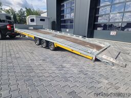 Fordonstransportör T 231 550x224 cm 3500 kg tridem höglastare med ALKO Bradley lÄgram V-chassi, 10" hjul, 195/55R10 aluminiumfÀlgar, hydrauliskt tippbart lastplan, perforerade körbanor, multiplex mellanlager, bakre del lutande, sidoreling fram avtagbar, sidolinje gul, perforerade körbanor med genomgÄende baktillramp 60 cm, lÄsbar verktygslÄda, stödhjul, lÄsbar kulkoppling....